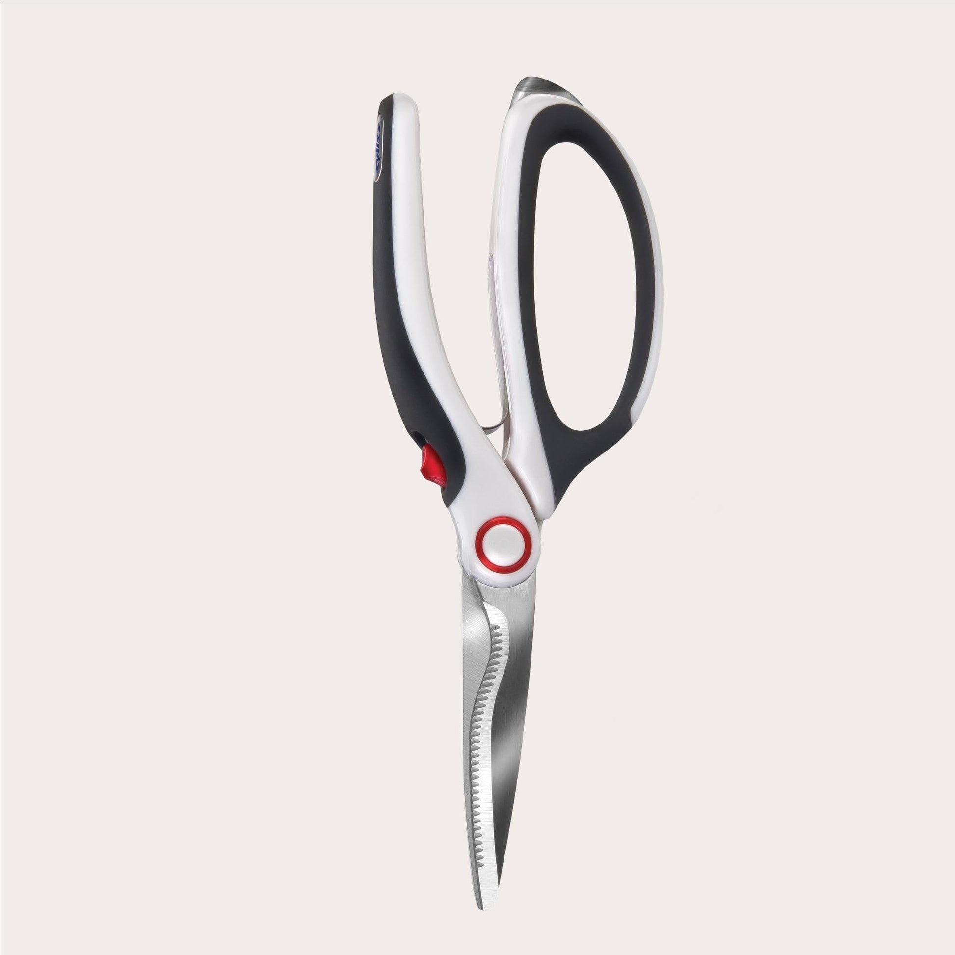 The Zyliss All-Purpose Shears deliver exceptional cutting power with heavy-duty stainless steel blades designed to stay sharp. The notched blade allows for effortless cutting through poultry bones, while the spring-assisted design reduces hand fatigue for comfortable use. Featuring a larger handle for improved grip and a hinge separation mechanism, these shears are easy to clean and help eliminate dirt traps. Dishwasher safe and backed by a 5-year guarantee, they are the perfect multi-purpose tool for any kitchen.