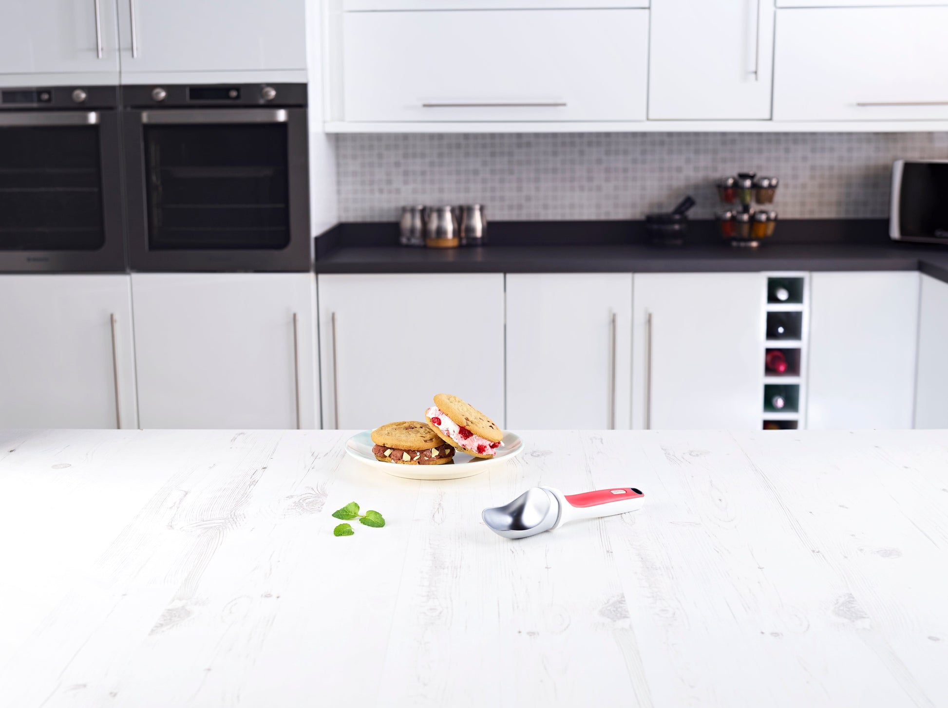The Zyliss Right Ice Cream Scoop has a superior design which makes it well equipped to dig into even the hardest frozen ice creams. You can use it on ice cream, sorbet or frozen yogurt with ease! The scoop shape also creates and appetizing presentation. The Right Scoop comes with a non-slip ergonomic handle that keeps your hands out of the cold and free from strain. Plus, the handle is treated so that it will not yellow with age.