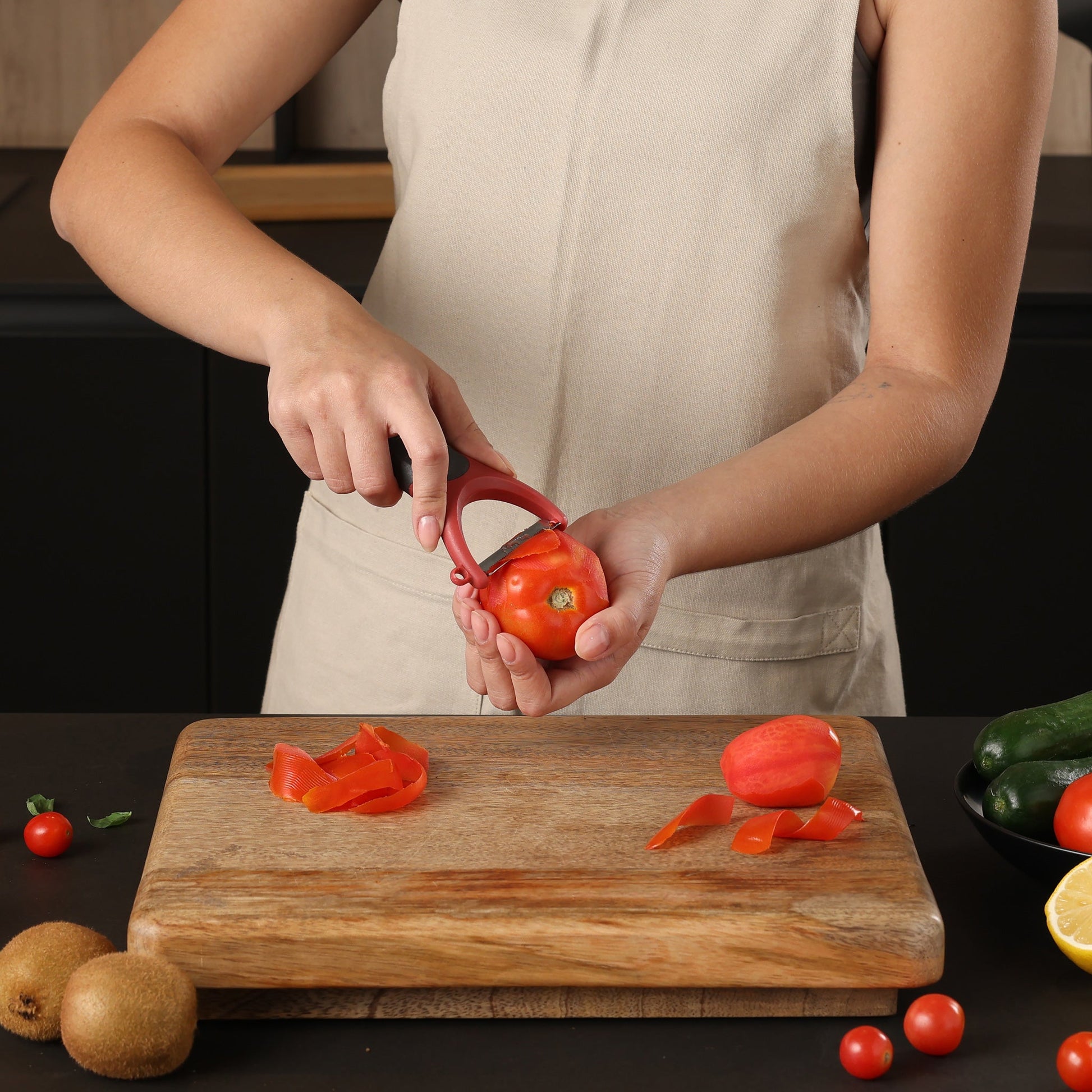 Meet the Zyliss Soft Skin Y Peeler, your go-to tool for effortlessly peeling delicate fruits and vegetables like tomatoes, kiwis, and pears. Crafted with an eco-friendly wheat straw handle, this peeler reduces plastic use by up to 50% while providing a comfortable, ergonomic grip. The micro-serrated swivel blade glides smoothly for precise peeling, and the side eye cutter tackles imperfections with ease. With its durable blade guard, food-safe construction, and dishwasher-friendly design, this peeler is built to last. Enjoy peace of mind with a 5-year guarantee, blending sustainability, performance, and reliability into one essential kitchen tool.